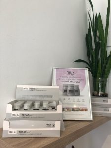 muk TREAT plus+ is a concentrated, in salon, professional treatment that supports healthy, strong, shiny hair. The supercharged ampule contains a powerful combination of HOPS and CTC (Cationic Tri-Plex Compound)* to prevent colour fade and Strength + Hydrate + Protect the hair.